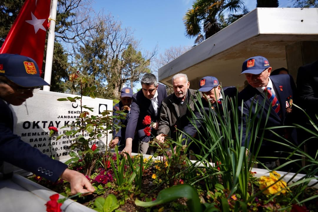 İmam Metin Ayyıldız tarafından okunan Kur’an-ı Kerim tilavetinin ardından, Başkan Gökhan Yüksel ve beraberindeki heyet, şehit mezarlarına karanfiller bıraktı.